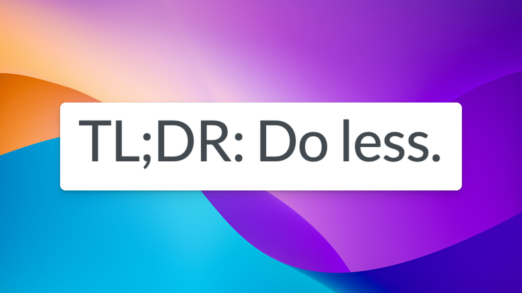 “TL;DR: Do everything you always did, and more besides.” I’m ready for some “do less” messaging, even if it’s a lie.